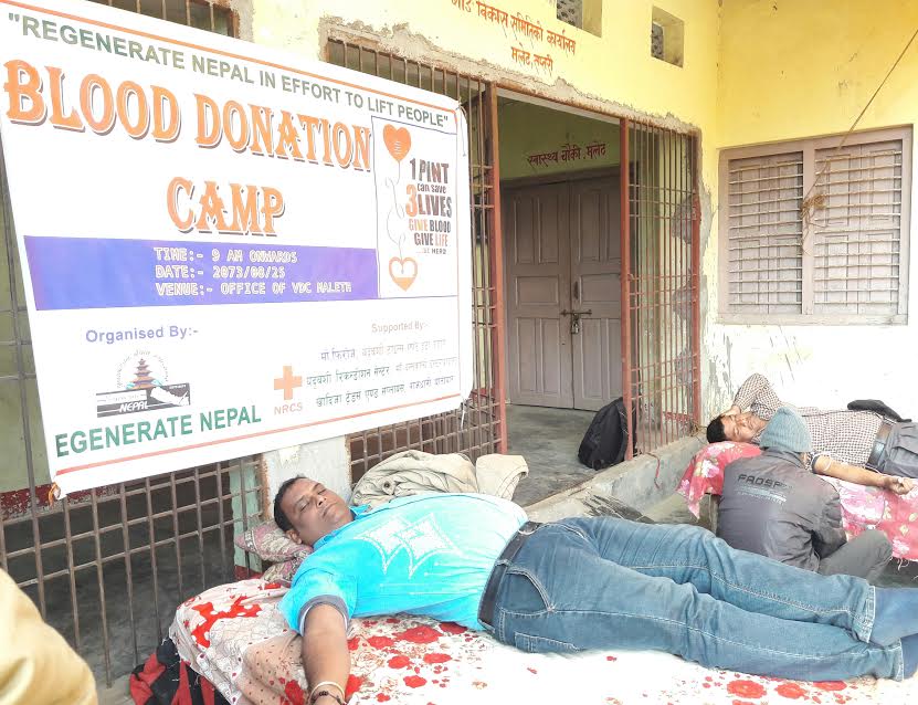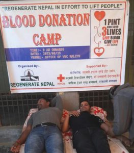 Regenerate Nepal in Effort to Lift People भन्ने मुल नाराका साथ सम्पन्न भएको रक्तदान कार्यक्रममा मो. फिरोज, राजधानी यातायात, भिमराज ईटा उद्योग, यदुवंशी रिकण्डिसन सेन्टर, खादिजा ट्रेडर्स र माँ दन्तकाली इन्टरप्राइजेजले सहयोग गरेका थिए ।