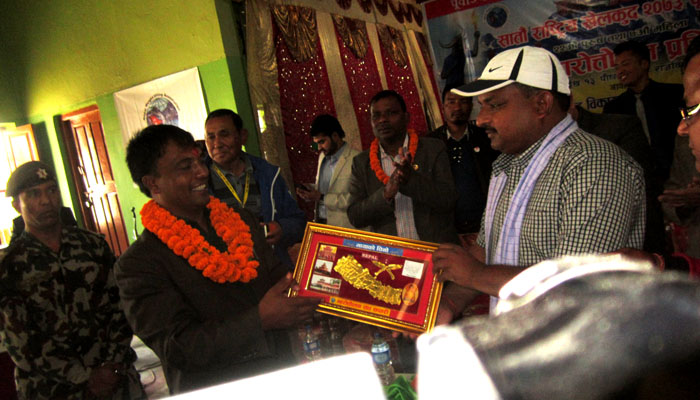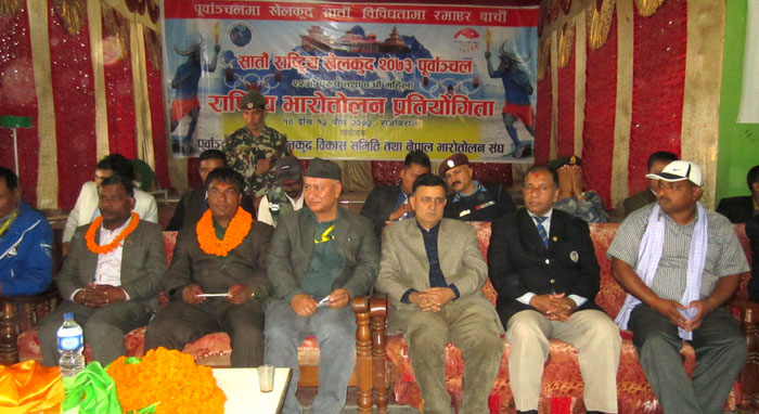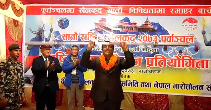 युवा तथा खेलकुद मन्त्री दलजित श्रीपाईलीले जिल्ला खेलकुद विकास समितिको कभर्ड हलमा प्रतियोगिताको उद्घाटन गरेका हुन् । २५ केजी तौल उचालेर प्रतियोगिताको उदघाटन गर्दै उनले खेलकुदले हिमाल, पहाड र तराईलाई जोड्ने काम गरेको बताए । खेलकुदको विकासकालागि खेलकुद विश्वविद्यालयको स्थापनाका साथै खेलाडिको जीवन विमा, आजिवन भत्ता, परिचय पत्रको ब्यवस्था गर्ने प्रतिवद्धता मन्त्री श्रीपाईलीले गरे । सातौं राष्ट्रिय खेलकुदवाट छानीएका खेलाडिलाई १३औं दक्षिण एशियाली खेलकुदलाई लक्ष्य वनाई मेहनत गर्न समेत उनले आग्रह गरे ।