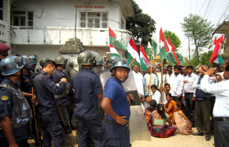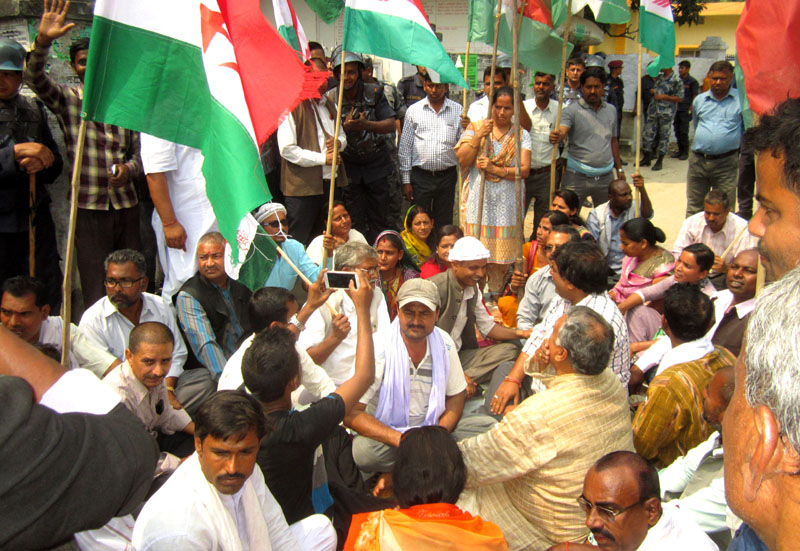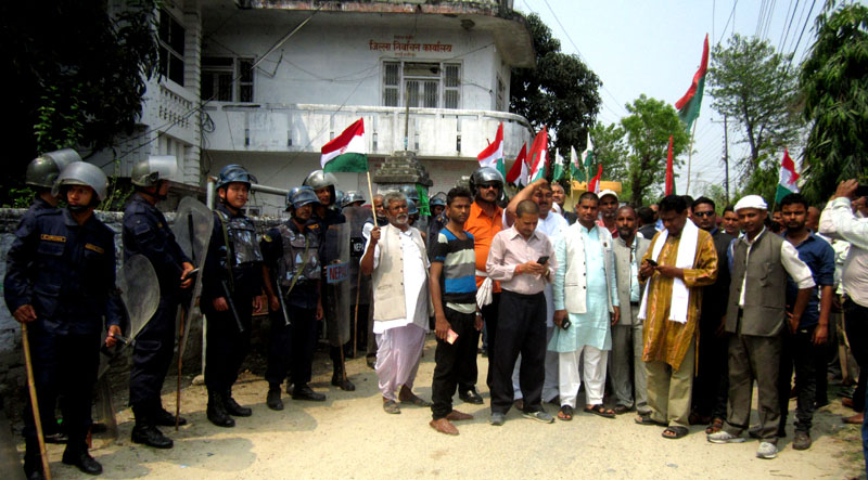 राजविराज, १५ चैत । संयुक्त लोकतान्त्रिक मधेशी मोर्चा सप्तरीले मङ्गलवार जिल्ला निर्वाचन कार्यालय घेराउ गरेका छन् ।