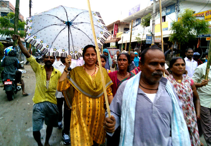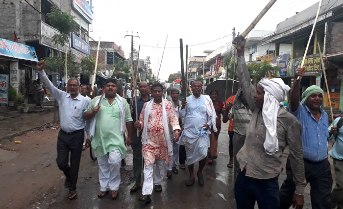 राजविराज स्थित हरिनन्देश्वर महादेव मन्दिर प्राङ्गणबाट निकालिएको लाठी जुलुस नगरको विभिन्न भाग परिक्रमा गरेको छ । वर्षाका बावजुद पनि व्यापक जनसहभागीता रहेको लाठी जुलुस नगर परिक्रमा पश्चात शहिद दशन चौकमा पुगी सभामा परिणत भएको थियो । सभामा बोल्दै राजपाका नेताहरुले संविधान संशोधन गरी मधेशको माग सम्वोधन नगरिए कुनै पनि हालतमा चुनाव हुन नदिने चेतावनी दिएका छन् ।