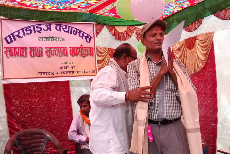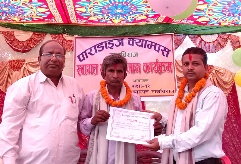 राजविराज, २९ असोज । राजविराज स्थित पाराडाइज कलेजद्वारा आइतवार आयोजित एक समारोहका बिच शहिद परिवार, कलेजका संस्थापक, कर्मचारी एवम् पूर्व विद्यार्थीलाई सम्मान गरिएको छ ।