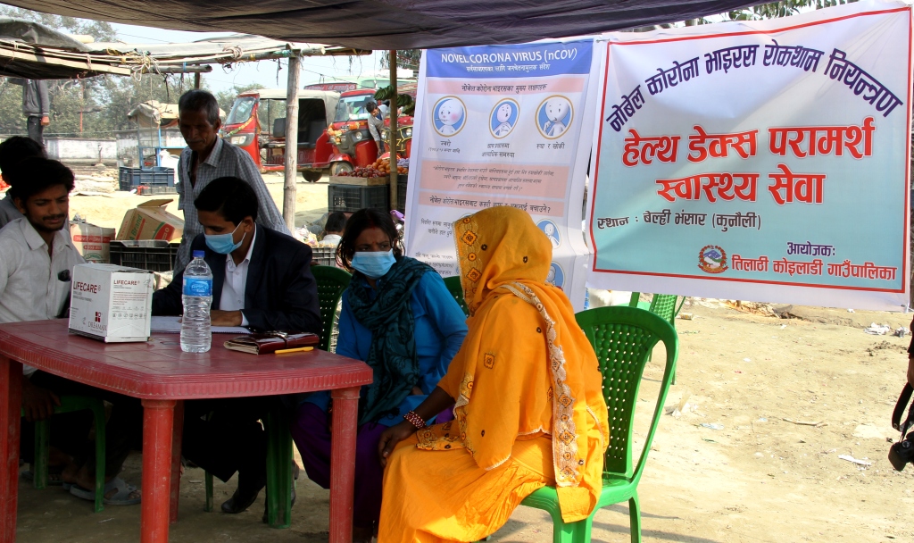 जिल्ला प्रशासन कार्यालय सप्तरीले गरेको परिपत्रअनुसार स्थानीय सरकारले तिलाठी कोइलाडी गाउँपालिका वडा नम्वर–१ बेल्ही भन्सारस्थित नेपाल–भारत सिमानाका तथा राजविराज विमानस्थलमा ‘हेल्थ डेस्क परामर्श स्वास्थ्य सेवा’ स्थापना गरिएको तिलाठी कोइलाडी गाउँपालिकाका अध्यक्ष सतिशकुमार सिंहले जानकारी दिएका छन । ‘जिल्ला प्रशासन कार्यालयले गरेको परिपत्रअनुसार आफुहरुले तिलाठी कोइलाडी गाउँपालिका वडा नम्वर–१ बेल्ही भन्सारस्थित हेल्थ डेस्क परामर्श स्वास्थ्य सेवा सुरु गरेको हो’ उनले भने–‘यस नाका भएर दैनिक ३ सयदेखि ५ सय भारतीय नागरिकहरु नेपालतर्फ भित्रिने गरेका छन ।’