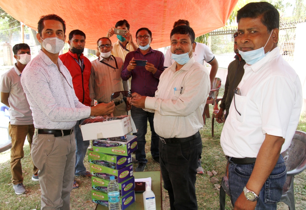 कोराना भाइरसको जोखिममा जिम्मेवारी वहन गरिरहेकाहरुलाई कोरोना भाइरसबाट जोगिन गोगल्स (चश्मा) उपलब्ध गराएका छन् । उनले आफै गजेन्द्रनारायण सिंह अस्पतालमा पुगेर अस्पतालमा काम गर्ने चिकित्सक लगायतका स्वास्थ्यकर्मीहरुकालागि सय ओटा गोगल्स अस्पतालका मेडिकल सुपरिन्टेन्डेन्ट डा. चुमन लाल दासलाई हस्तान्तरण गरेका छन् ।