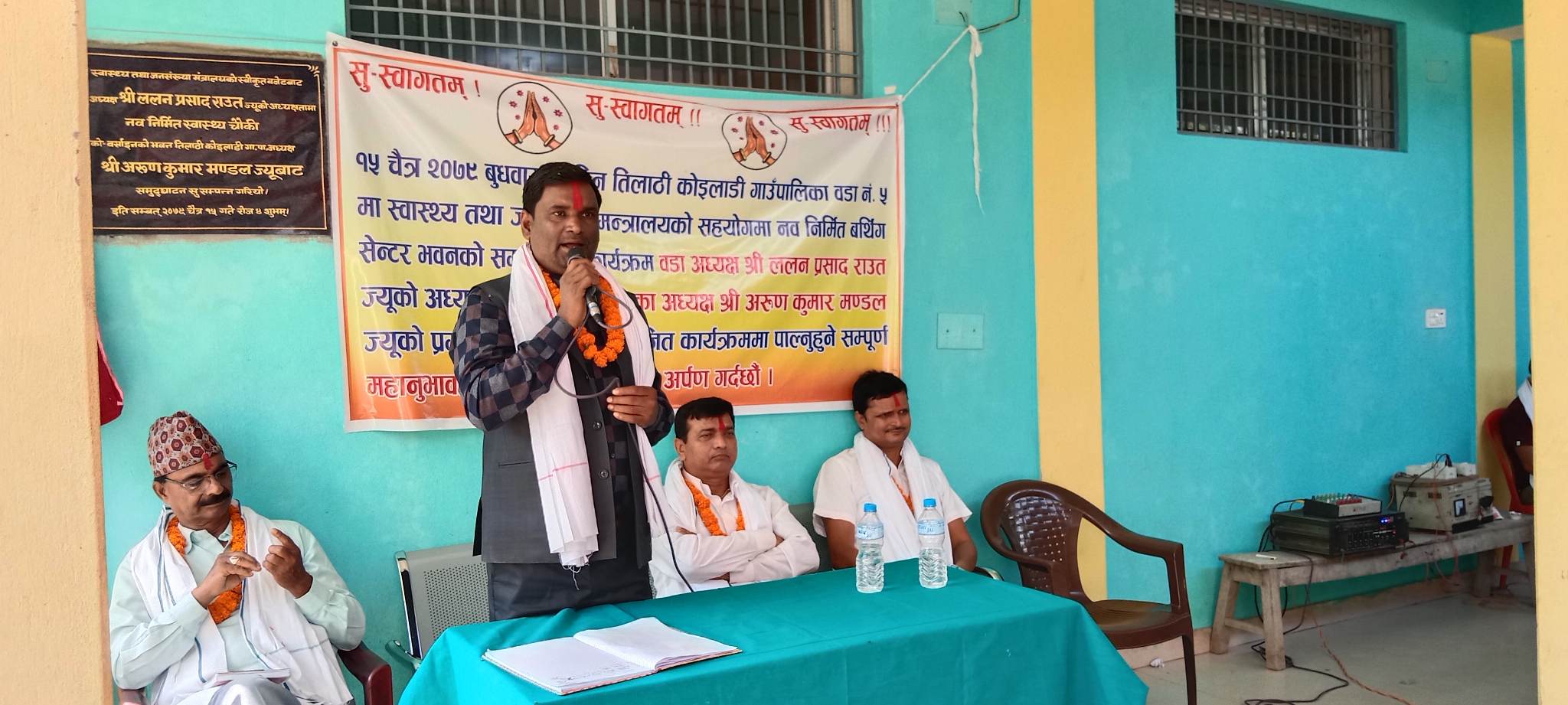 सप्तरीको तिलाठी कोइलाडी गाउँपालिका ५ स्थित को. वर्साइनमा नवनिर्मित वर्थिङ सेन्टर भवनको उद्घाटन गरिएको छ । तिलाठी कोइलाडी गाउँपालिका ५ को वडा अध्यक्ष ललन प्रसाद राउतको अध्यक्षतामा आयोजित एक समारोहका बीच गाउँपालिका अध्यक्ष अरुण कुमार मण्डलले बुधबार उद्घाटन गरेको हो ।
