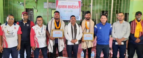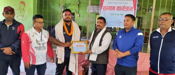 खेलकुद विकास समितिका कार्यालय प्रमुख दिनेश भुजेलको अध्यक्षतमा आयोजित कार्यक्रममा प्रमुख अतिथि मधेस प्रदेशका शिक्षा तथा समाजकल्याण मन्त्री महेश प्रसाद यादवले जनही नगद ५ हजार १ सय राशीको नगद पुरस्कारसहित प्रमाणपत्र , दोसल्ला ओढाएर सम्मान गरे ।