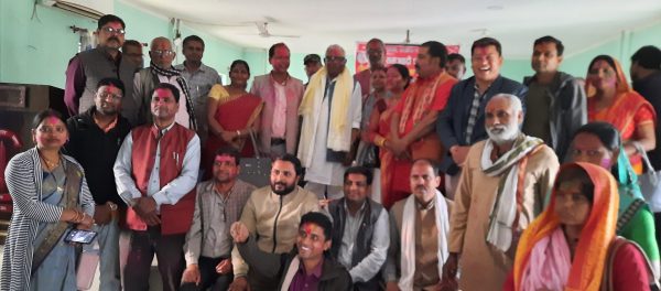 जसपा सप्तरीद्वारा आयोजित होली पर्वको अवसरमा आयोजित नवनियुक्त वन मन्त्रीको सम्मान तथा शुभकामना आदानप्रदान कार्यक्रम सहभागी नेताकार्यकर्ताहरु । फोटो : न्यूज टुडे