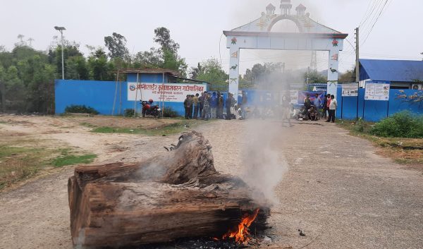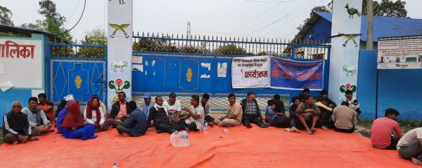 संघर्ष समितिका संयोजक अरुण कुमार चौधरीको नेतृत्वमा पुगेका समितिका पदाधिकारी तथा स्थानीयबासीले गाउँपालिकाको मुल गेटमा ताला लगाएर गाउँपालिका अगाडि धर्ना दिएका छन् ।