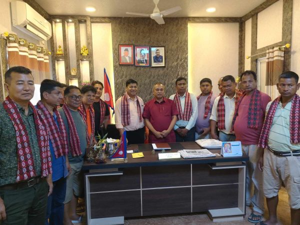 भेटघाट पछि सामुहिक तस्वीरमा मन्त्री लेखीसहित प्रतिनिधि मण्डलका सदस्यहरु । फोटो : न्यूज टुडे
