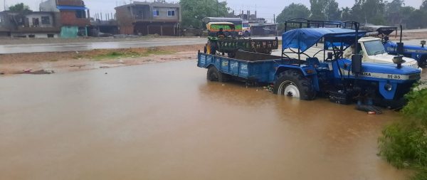 भीषण बर्षाका कारण पुर्वपश्चिम राजमार्गमा पानीको निकास बन्द हुँदा डुवानमा परेको पार्किङ गरेर राखेको सवारी साधन । फोटो न्यूज टुडे