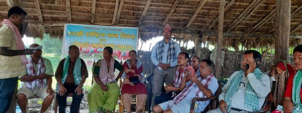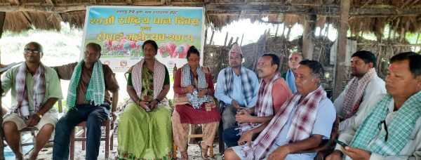 “जलबायु मैत्री कृषि, धान उत्पादनमा वृद्धि” भन्ने नाराको साथ आयोजित कार्यक्रममा धान रोपाई तथा शुभकामना आदानप्रदान गरी राष्ट्रिय धान दिवस मनाएको अमसोत सामुदायिक कृषि सहकारी संस्था बेल्हाका व्यवस्थापक रामी यादवले जानकारी दिए ।