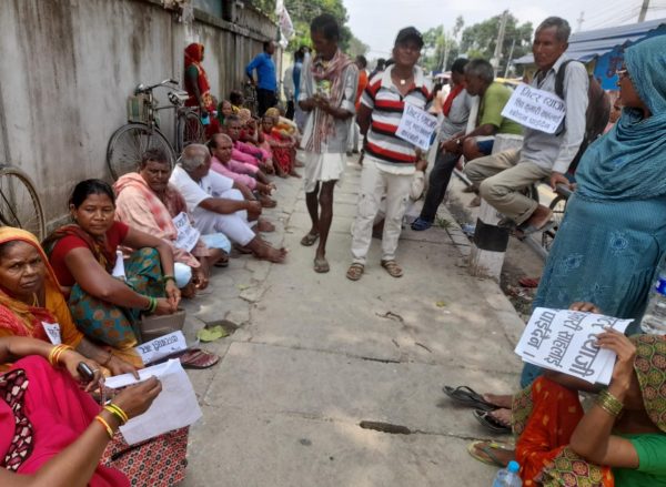 पक्राउ परेकी रामदेवका श्रीमतीलाई कडा सजायको माग गर्दै अदालत अगाडि धर्ना बसेका मिटर ब्याज पीडितहरु । फोटो : न्यूज टुडे