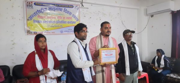 इन्टेलेक्चुअल फाउण्डेशन नेपालले अन्तरास्ट्रिय मातृभाषा दिवसको अवसरमा कार्यक्रम आयोजना गरेकोमा खुशी व्यक्त गर्दै नगरप्रमुख यादवले कार्यक्रमले मातृभाषाको विकास, प्रबर्द्धन, संरक्षणमा ठूलो टेवा पुग्ने विश्वास व्यक्त गरे ।