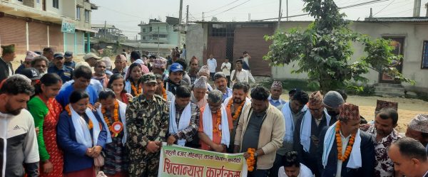 वडा नम्बर ६ का अध्यक्ष अशोक कुमार आचार्यको अध्यक्षतामा आयोजित एक समारोहका वीच महिला बालबालिका तथा ज्येष्ठ नागरिक मन्त्री नबलकिशोर साहले भूमि पूजन गरि सडक शिलान्यास गरेका हुन् ।