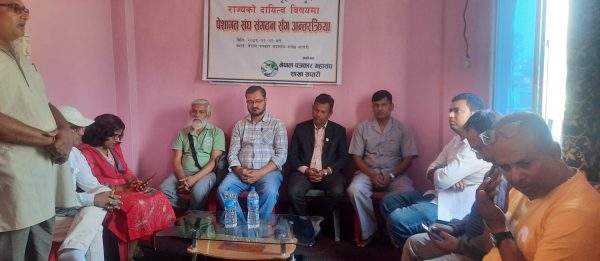 नेपाल पत्रकार महासंघका उपाध्यक्ष रामनारायण विश्वासले कार्यक्रमको उदेश्य बारे प्रकाश पार्दै लोकतन्त्रको रक्षा र पेशागत तथा भौतिक सुरक्षाका लागि पेशागत संघसंगठन एकजुट हुनुपर्नेमा जोड दिए ।
