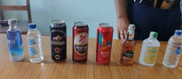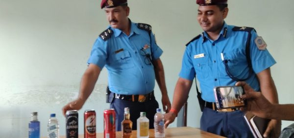 पत्रकार सम्मेलनमा सार्वजनिक गरिएको प्रहरीद्वारा बरामद मदिरा । फोटो : न्यूज टुडे