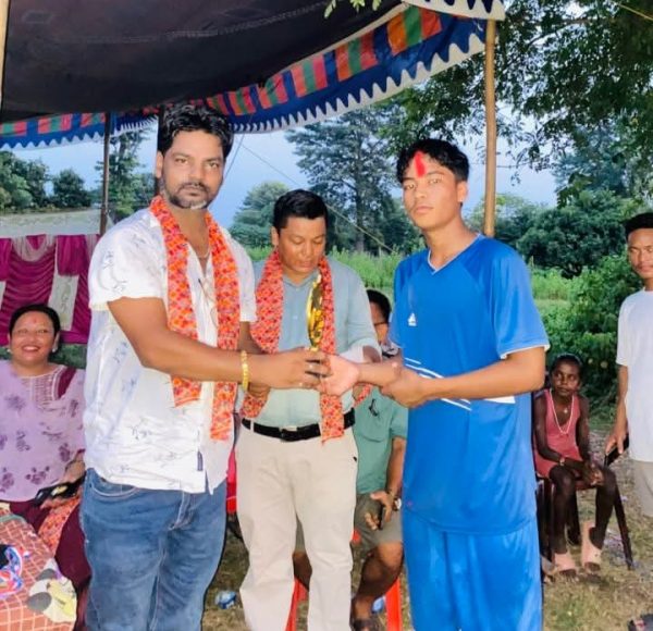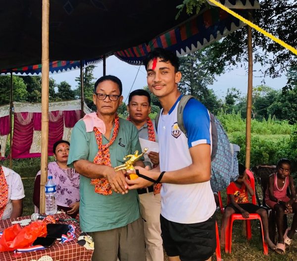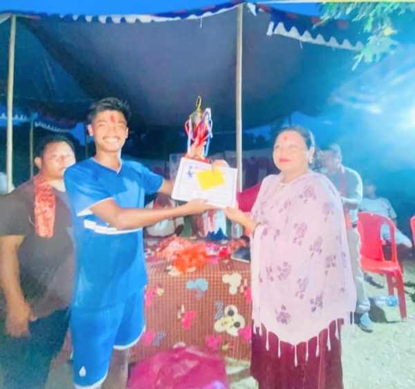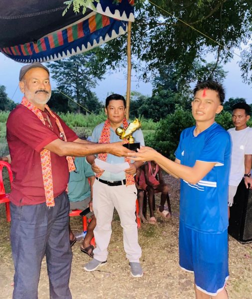 बेष्ट खेलाडीको उपाधि ग्रहण गर्दै उपविजेता टिमका खेलाडी संदेश चौधरी । फोटो : न्यूज टुडे