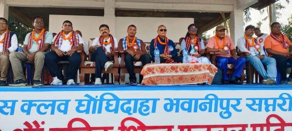 चर्चित उद्घोषक प्रवीण कुमार चौधरीद्वारा संचालित कार्यक्रममा स्वागत महुली ११ स्पोर्ट्स क्लब घोघिदाहा भवानीपुरका पूर्व अध्यक्ष एबम् पूर्व शिक्षक रामदेव चौधरीले गरे ।