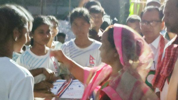 महिला तर्फको विजेता टिमलाई पुरस्कार प्रदान गर्दै प्राविधिक शिक्षा अधिकृत चौधरी। फोटो: न्यूज टुडे