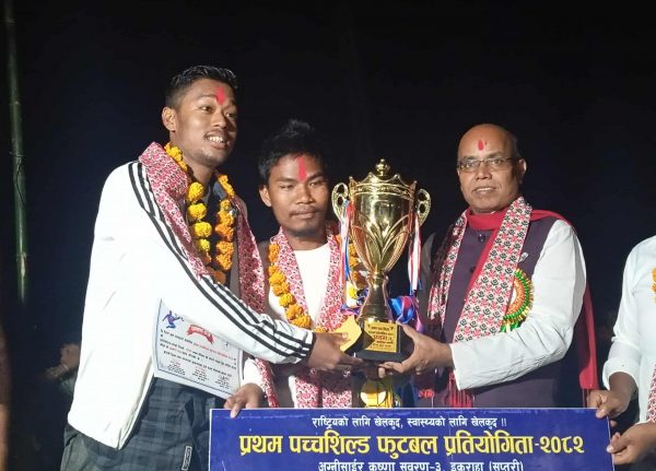 थ्री जिरो युवा क्लब अग्नीसाइर कृष्णासवरन गाउँपालिका ३ इकराहाद्वारा संचालित प्रथम पच शिल्ड फुटबल प्रतियोगिताको उपाधि कंकालिनी युवा क्लव सीतापुरले हात पारेको छ । अग्नीसाइर कृष्णासवरन गाउँपालिका वडा नम्बर २ स्थित इटहर्वा खेल मैदानमा सोमबार सम्पन्न फाइनल खेलमा राजाजी युवा क्लव मोहनपुर सप्तरीलाई ०-२ गोलले पराजित गर्दै सितापुरले उपाधिमाथि कब्जा जमाएको हो ।