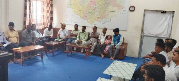 सप्तरी उधोग बाणिज्य संघका अध्यक्ष लालबाबु अग्रवालको नेतृत्वमा कार्यसमितिका पदाधिकारी तथा उधोगी व्यवसायीहरुले प्रमुख जिल्ला जिल्ला अधिकारी टुवराज पोखरेललाई ज्ञापनपत्र बुझाउँदै ध्यानाकर्षण गराएका छन् ।