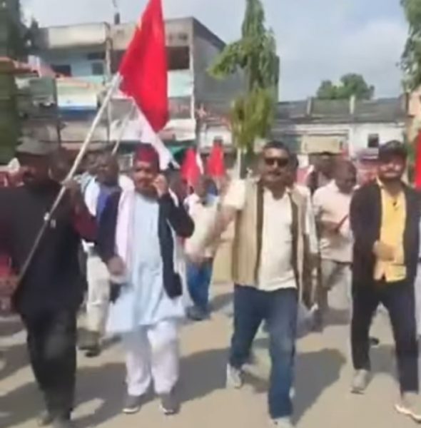 सप्तरी सदरमुकाम राजविराज एमाले नेताकार्यकर्ताले गरेको विरोध प्रदर्शन । फोटो : न्यूज टुडे